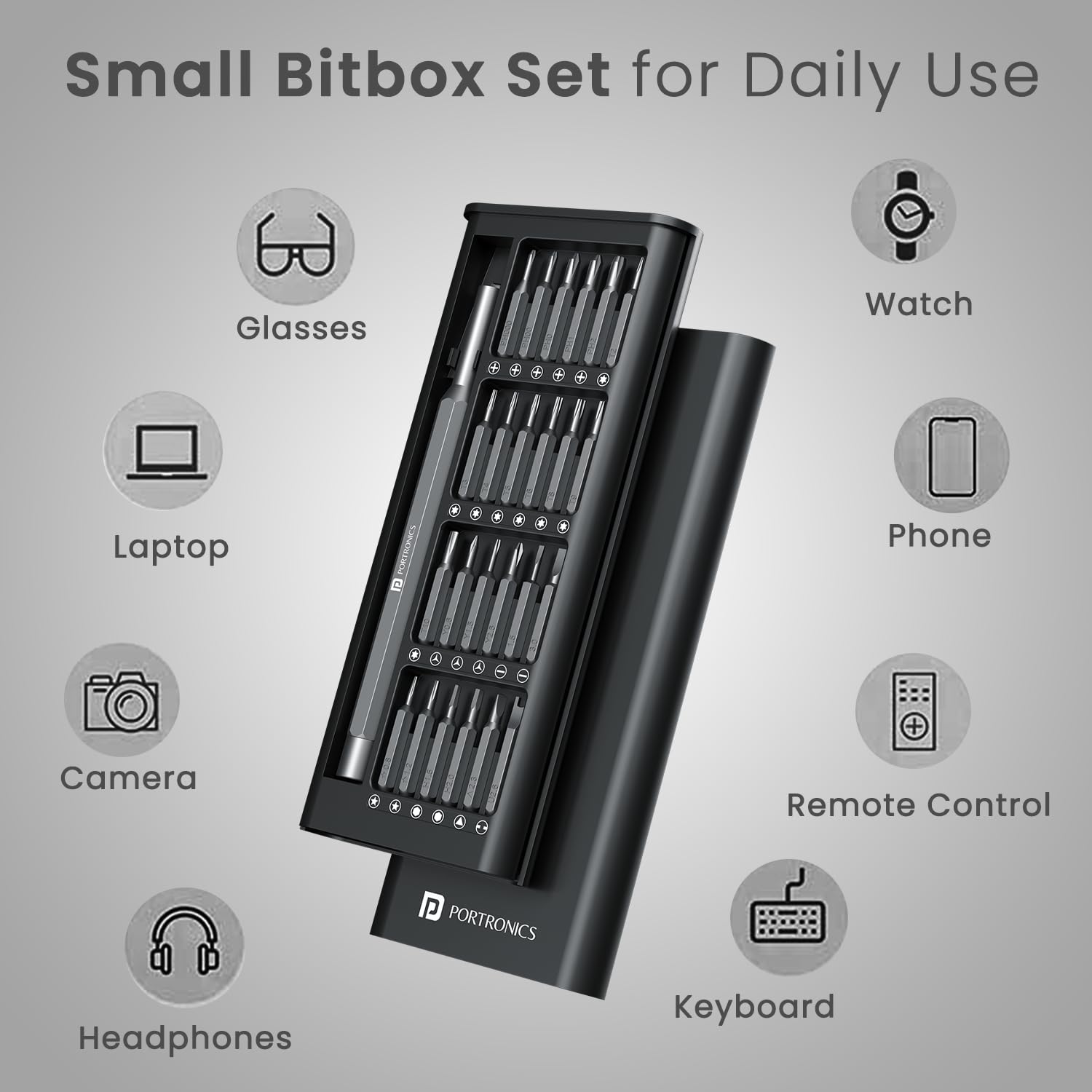 Portronics Bit Box,24-in-1 Screwdriver Kit, Auto Repair (Black)