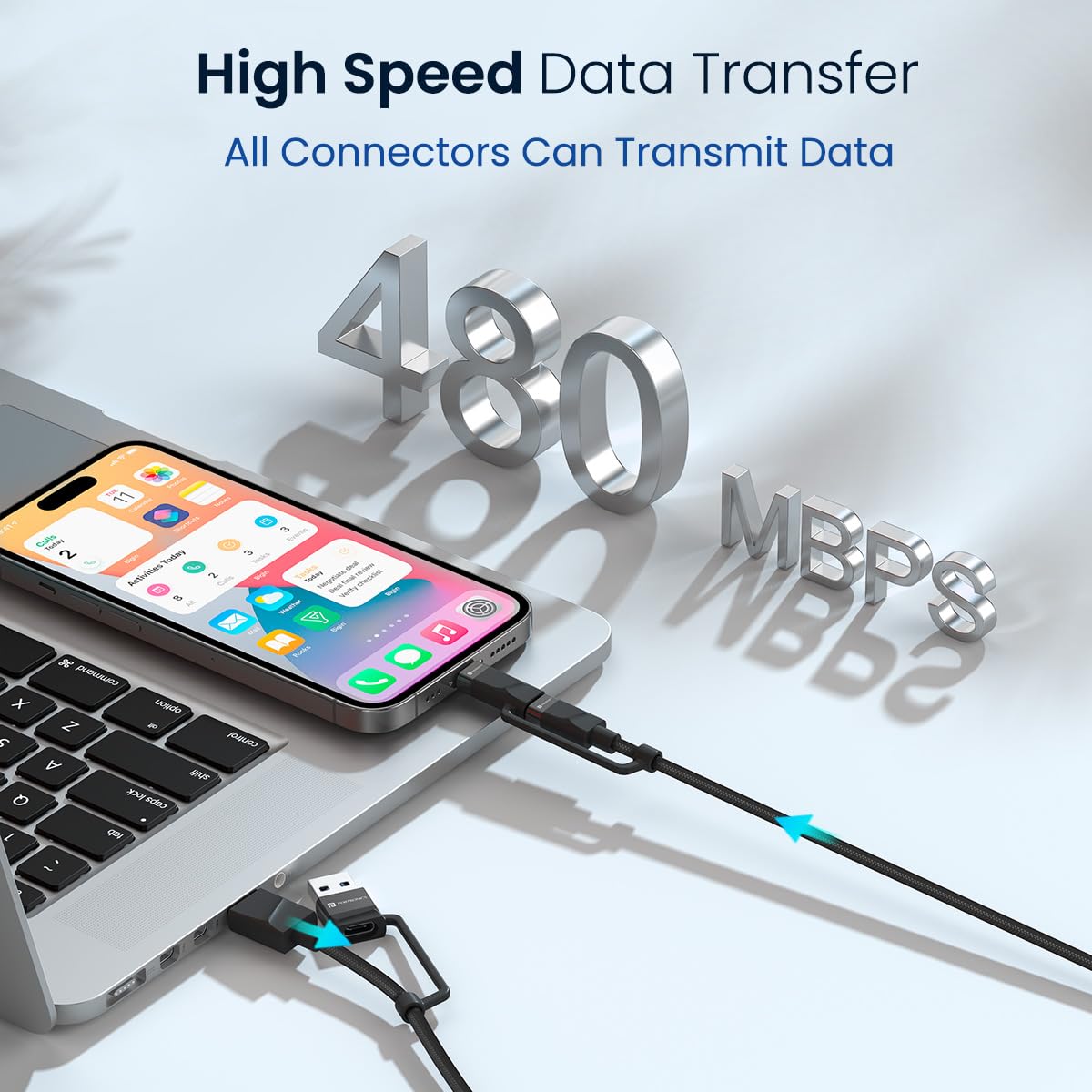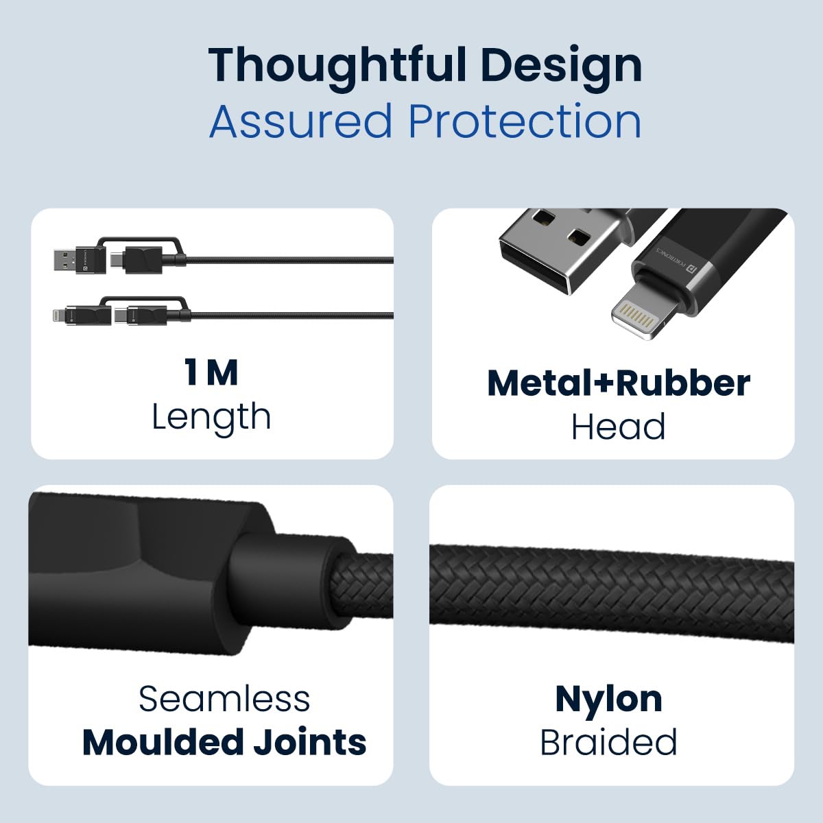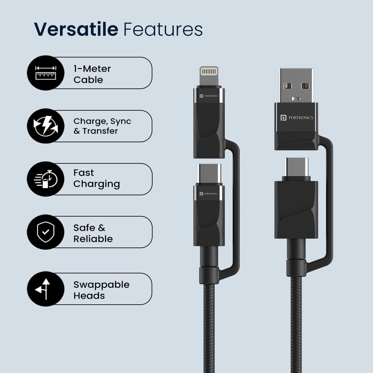 Portronics Omnicord 60W 4-In-1 Multifunctional Fast Charging Cable (Black)